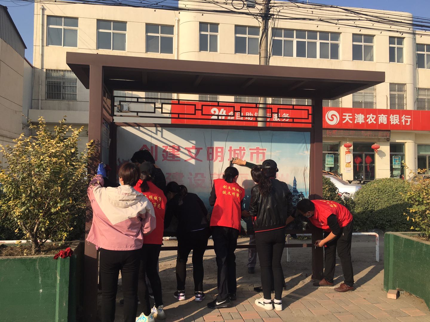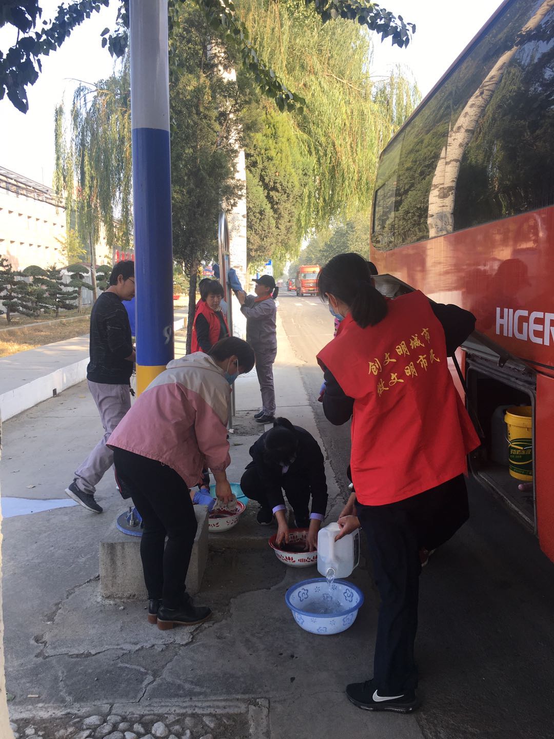 我公司組織開展黨員干部擦拭清理公交站牌活動